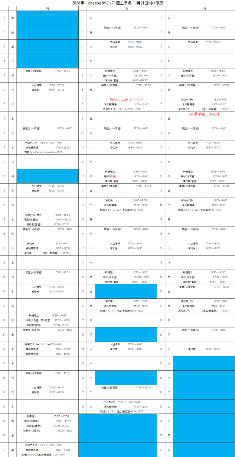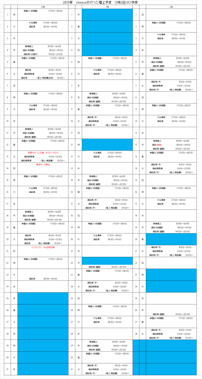 ※11月~3月は冬季練習期間の為練習量が多めです。